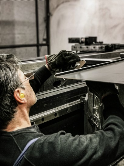 Disponiamo di 7 pressopiegatrici BEYELER attrezzate con una vasta gamma di matrici e punzoni. Lunghezza massima 8 metri.